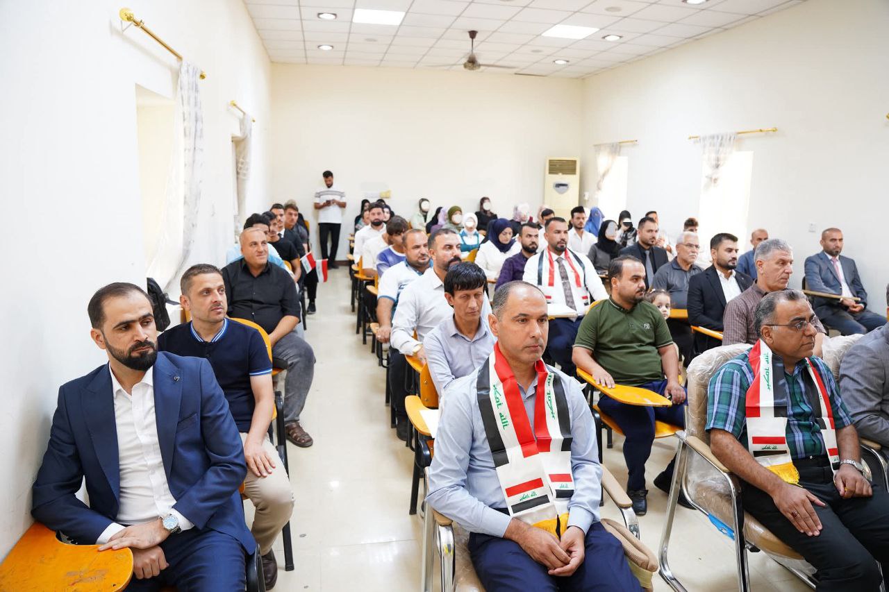 The festival was attended by the Dean of the College, Prof. Dr. Nihad Ali Shafiq, along with a number of faculty members, staff, and students. The ceremony commenced with the playing of the Iraqi National Anthem and the recitation of Surah Al-Fatiha in remembrance of the martyrs of Iraq and the Islamic nation.