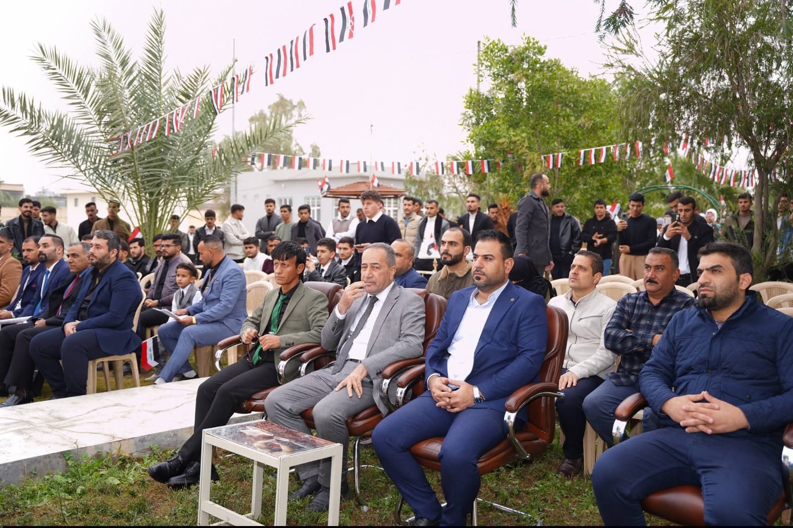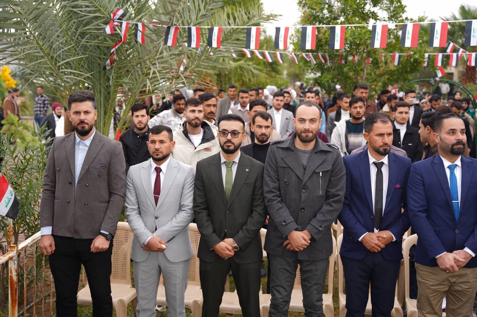 The ceremony was distinguished by its expressive artistic and national segments. The college students presented a poignant dramatic performance embodying the meanings of the noble sacrifices made by the sons of the nation and their response to the call for the sacred Jihad (struggle/defense) in order to defend the land and unity of Iraq, which received significant interaction from the audience.