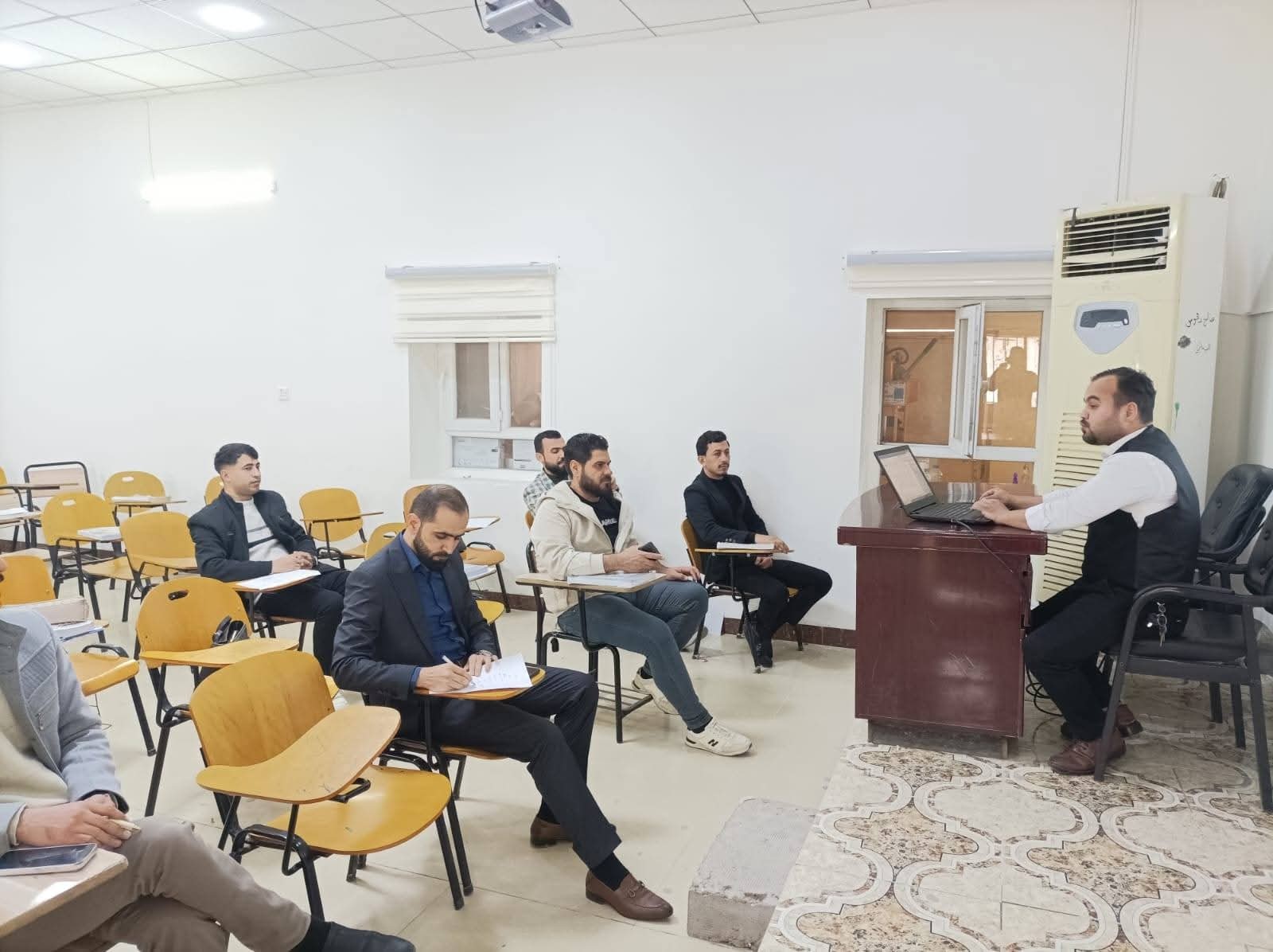 The seminar took place at the Tuz Khurmatu Martyrs Hall on Thursday, February 12, 2026, at 11:00 AM, in the presence of several faculty members, staff, and students.