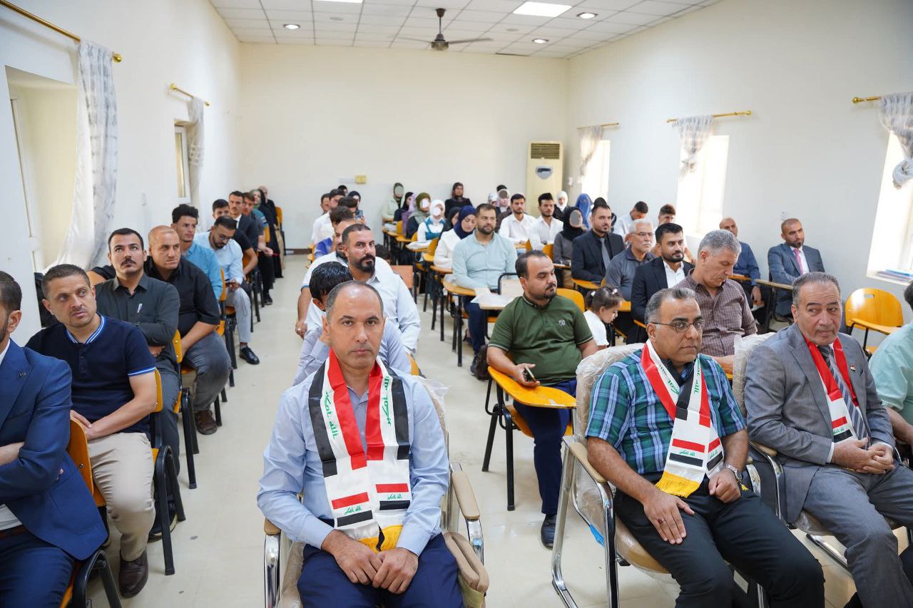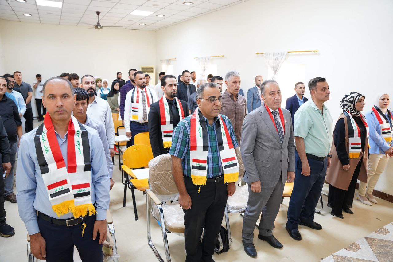 The festival was attended by the Dean of the College, Prof. Dr. Nihad Ali Shafiq, along with a number of faculty members, staff, and students. The ceremony commenced with the playing of the Iraqi National Anthem and the recitation of Surah Al-Fatiha in remembrance of the martyrs of Iraq and the Islamic nation.