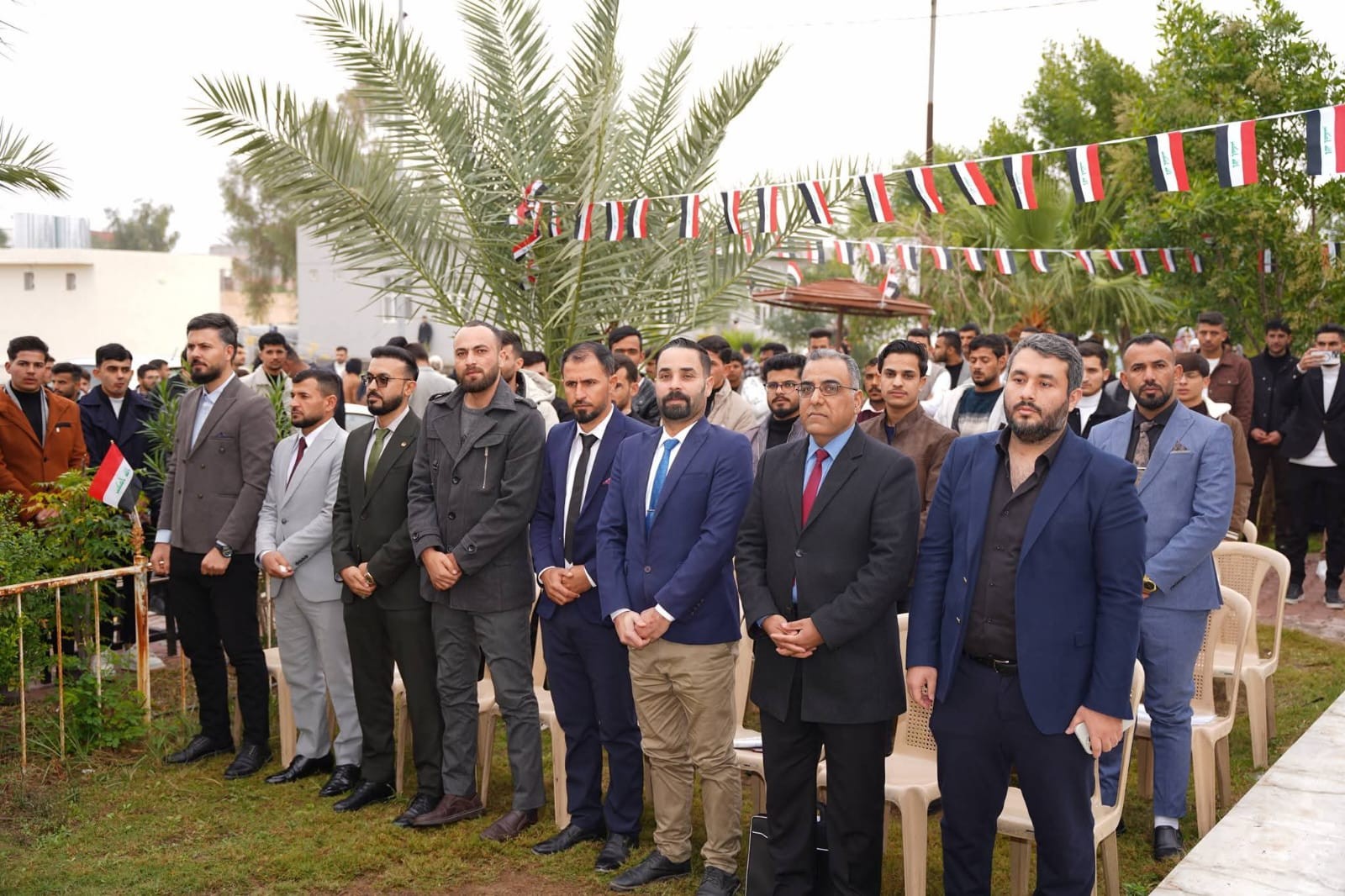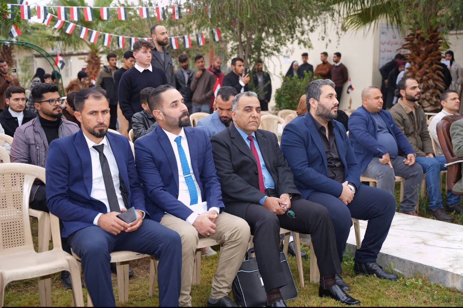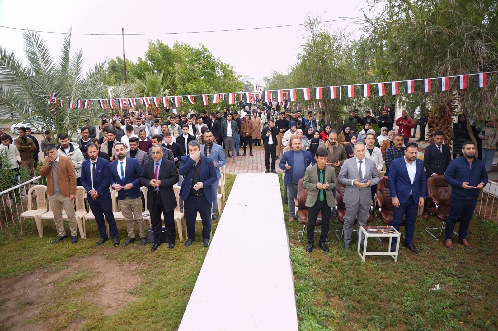 The ceremony was distinguished by its expressive artistic and national segments. The college students presented a poignant dramatic performance embodying the meanings of the noble sacrifices made by the sons of the nation and their response to the call for the sacred Jihad (struggle/defense) in order to defend the land and unity of Iraq, which received significant interaction from the audience.