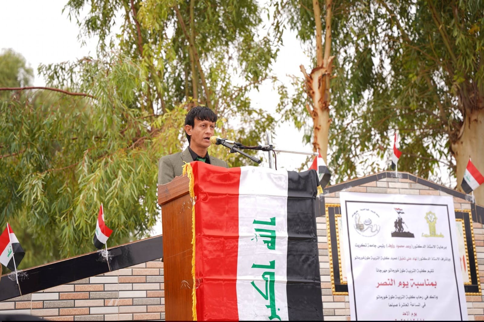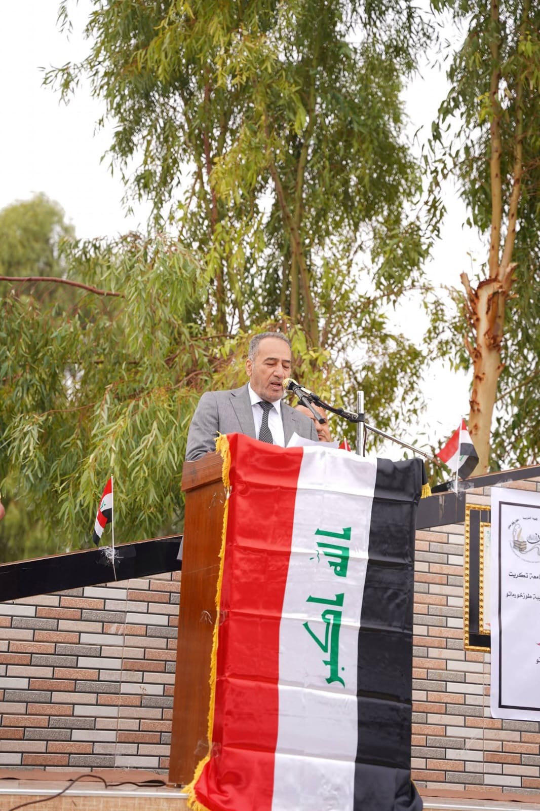 The festival also witnessed an eloquent address by Dr. Ibrahim Ali Suleiman, Head of the Department of Arabic Language, who discussed aspects of the journey of victories and challenges, stressing the necessity of capitalizing on the victory to build a prosperous future for Iraq.