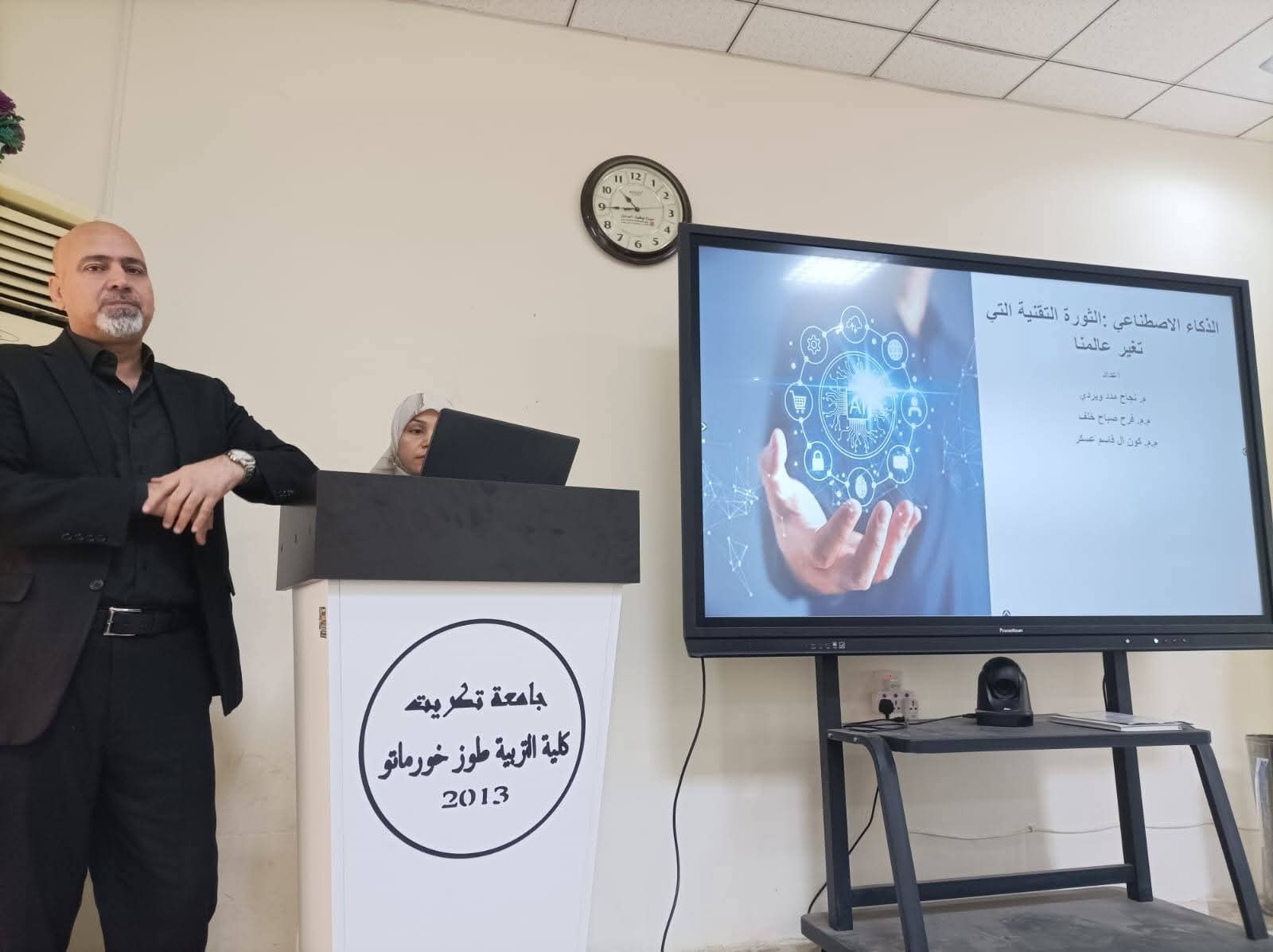Under the generous patronage of Professor Dr. Wa'ed Mahmoud Raouf, President of Tikrit University, and with the direct supervision and diligent follow-up of Professor Dr. Nihad Ali Shafiq, Dean of the College of Education in Tuz Khurmatu, the Rehabilitation, Employment, and Follow-up Unit at the College of Education, Tuz Khurmatu, organized its intensive knowledge program as part of the activities for Global Entrepreneurship Week 2025, the program featured two distinct courses aimed at developing the skills of students and academics in the fields of the future and entrepreneurship. Both activities were held in the Tuz Khurmatu Martyrs Hall at precisely 10:00 AM, and included: The course, "Artificial Intelligence and Digital Transformation: A Roadmap for the Future of Business," a specialized training course held over two days: Wednesday and Thursday, corresponding to 3-4/12/2025, where the lecturers—Assist. Lect. Najah Madad Wardi, Assist. Lect. Farah Sabah Khalaf, and Assist. Lect. Koun Al Qasim Askar—reviewed the vital importance of digital transformation and artificial intelligence in shaping a clear vision for the future of the business environment and forthcoming professional needs; and the activity, "Success Stories," an inspirational seminar that took place on Monday, 1/12/2025, which focused on fostering a culture of initiative and ambition by reviewing personal successful experiences, with speakers including Assist. Lect. Elaf Talat Othman and student Wa'ed Ahmed Mohammed. This high-quality program underscores the College's commitment to developing its students' skills and preparing them to become active pioneers in the fields of development and modern entrepreneurship. #Division_of_Media_and_Government_Communication College of Education, Tuz Khurmatu - Tikrit University 8/12/2025.